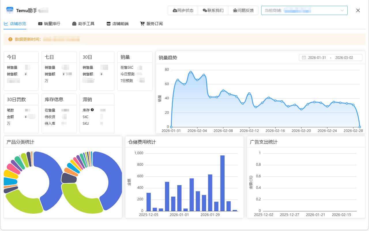 店铺总览是登录后的默认页面,使用该页面可以快速浏览店铺整体情况